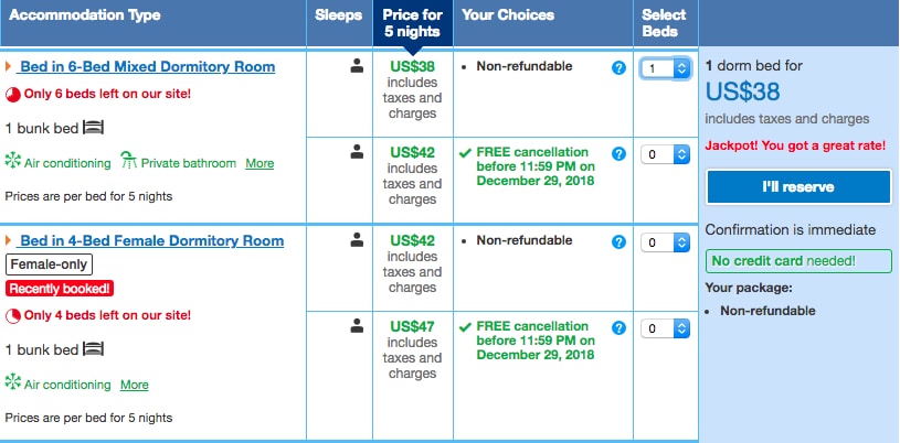 د- بعد التصفح وجدت عرض معقول للغاية، سرير في غرفة نوم مشتركة بسعر ٣٤ دولار فقط شاملة الضرائب طوال فترة الاقامة في فندق تقيمه العام ٨.٤ من ١٠ وهو تقيم مرتفع بكل تأكيد مع سعر ممتاز. لذلك قمت بالضغط على رابط الفندق لأدخل الى الصفحة الخاصة به ومنها استطيع مشاهدة صور الفندق وكافة اراء وتقيمات النزلاء بشكل مفصل مثل مستوى النظافة والراحة والعمالة والموقع والقيمة مقابل المال والانترنت والحجز نقوم بالضغط على صفحة الفندق.