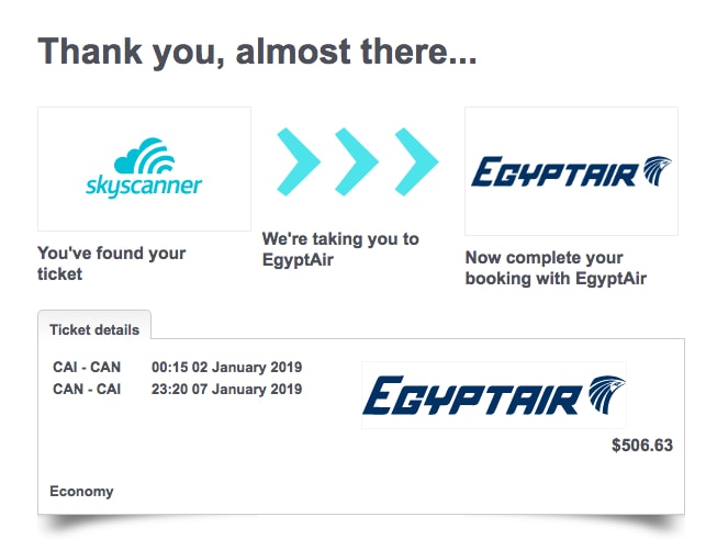 أ- قم بالدخول الى موقع skyscanner، فهذا الموقع يقوم بالبحث في جميع مواقع حجز تذاكر الطيران ويجلب لك افضل العروض لتختار من بينها، وبالطبع هو الموقع الاشهر في العالم لحجز تذاكر الطيران في الوقت الراهن.