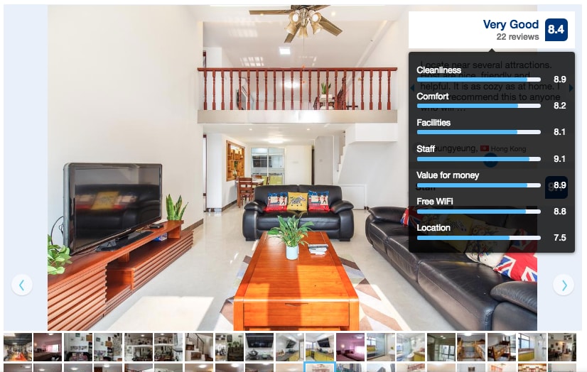 هـ – بعد الدخول الى صفحة الفندق والوقوف لثوان بمؤشر الماوس على التقيم العام تنسدل قائمة تعرض تقيمات العملاء بشكل مفصل وبالطبع القيمات جيدة للغاية. كذلك يمكنك تصفح الصور لمشاهدة الفندق من الداخل وملحقاته لتقرر ما اذا كان الانسب لك ام تحتاج الى شئ افضل.